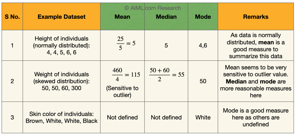 Examples explaining Mean, Median and Mode: