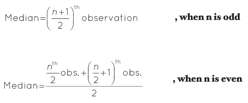 The median is the middle value in a dataset, that is, the value corresponding to the 50th percentile when all of the observations are sorted in ascending order. If the dataset has an even number of values, the median is the average of the two middle values. The median is less sensitive to outliers than the mean and is often used when there are extreme values in the dataset.