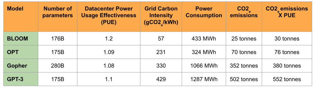 Source: “Estimating the Carbon Footprint of Bloom” by Luccioni et al.