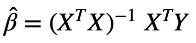The estimates of the model coefficients are found by taking the partial derivatives of SSR and setting them to 0 to solve what is called the normal equations. In standard matrix form, the OLS solution is written as: