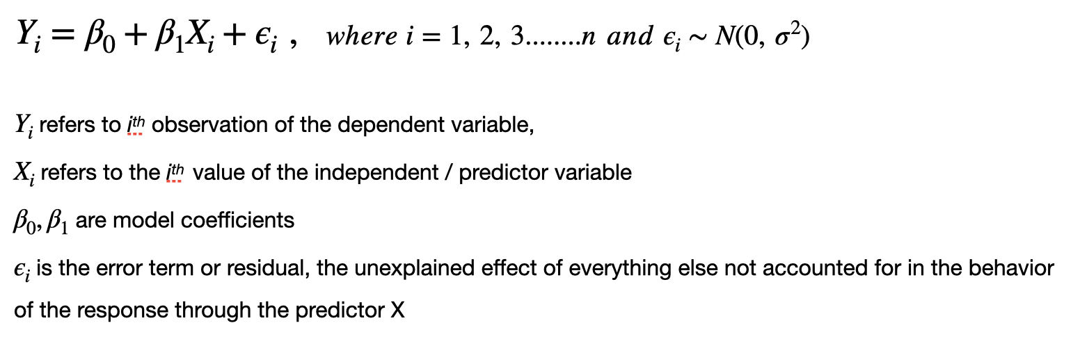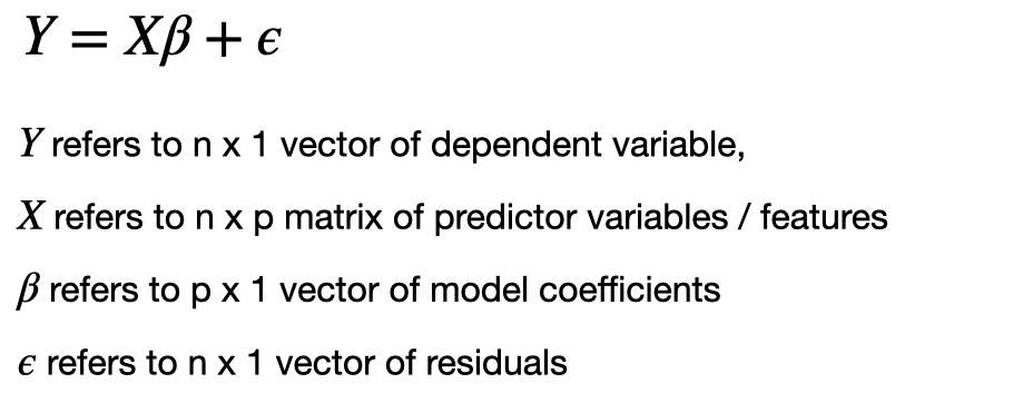 At a conceptual level, regression is a supervised learning technique that models the relationship between an outcome (meaning there is labeled target data, or a known Y variable) and one or more predictor variables, which are sometimes referred to as features (X variable). In Linear regression, the mean, or expected value, of a continuous response variable Y is related to one or more independent predictor variables X through a weighted linear function, where the weights, or coefficients, correspond to the individual effect of X on Y. If there is only one predictor, the model is referred to as simple linear regression, and if there is more than one independent variable, it is called multiple linear regression.