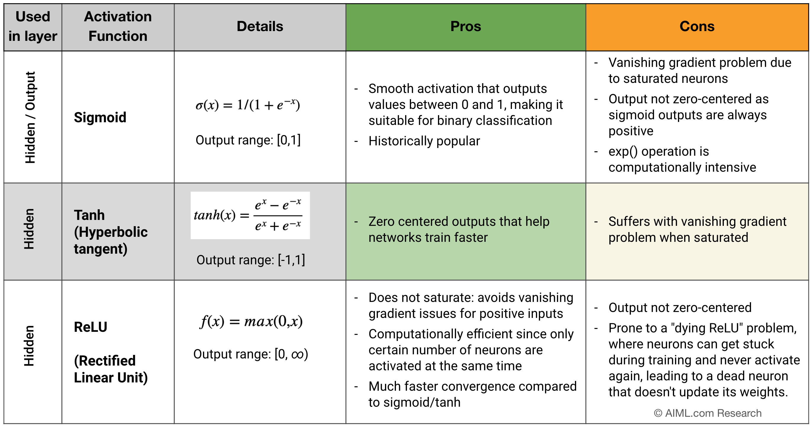 Title: Pros and Cons of different activations functions