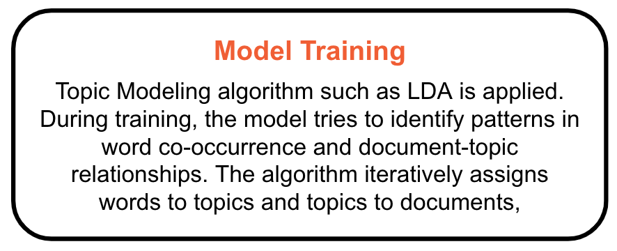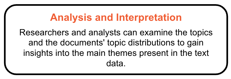 LDA is one of the most widely used topic modeling algorithms. It assumes that every document is a distribution of topics and every topic is a distribution of words. It iteratively assigns words to topics and documents to topics in a way that optimally explains the observed word-document relationships. Through this process, LDA extracts a set of topics and the distribution of words within each topic.