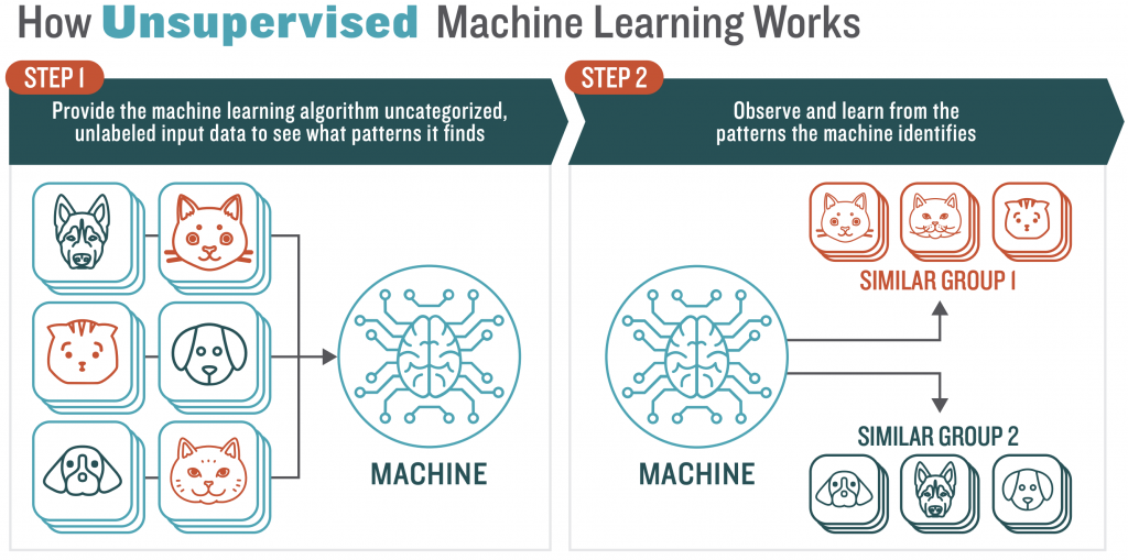 The following infographics from Booz Allen Hamilton provides a pictorial explanation of what is unsupervised learning: